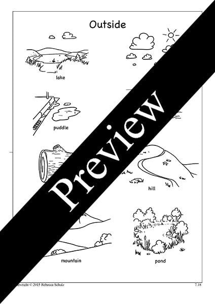 Vocab: hill, lake, log, mountain, pond, puddle, sea, sky