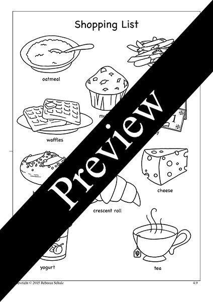 Vocab: bread roll, cheese, crescent roll, muffin, oatmeal, pasta, tea, waffles, yogurt, money